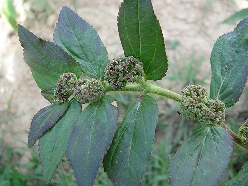 Mô tả: Cây thảo sống hằng năm hay nhiều năm, có thân mảnh cao 15-40cm, toàn cây có lông ráp và có nhựa mủ trắng. Lá mọc đối, cuống ngắn, phiến lá hình mũi mác, dài 4-5cm, rộng 7-15mm, mép có răng cưa nhỏ. Gốc cuống lá có 2 lá kèm nhỏ hình lông cứng. Nhiều cụm hoa hình chén nhỏ ở các nách lá. Mỗi chén mang các hoa đơn tính. Quả rất nhỏ, đường kính khoảng 1,5mm, khi già nứt thành 3 mảnh vỏ mang 3 hạt rất nhỏ. Ra hoa quanh năm.