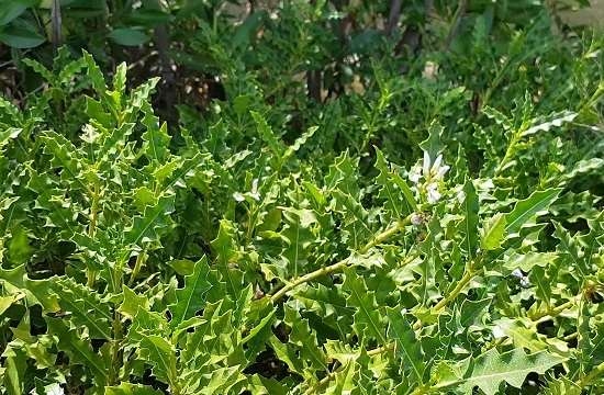 Lá: Lá mọc đối xứng nhau ở thân cây, cặp lá trên với cặp lá dưới có hướng vuông góc với nhau, mép lá kiểu lượn sóng với những gai sắc nhọn ở ngọn của đường lượn sóng.